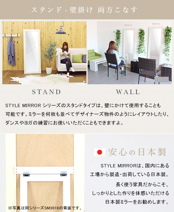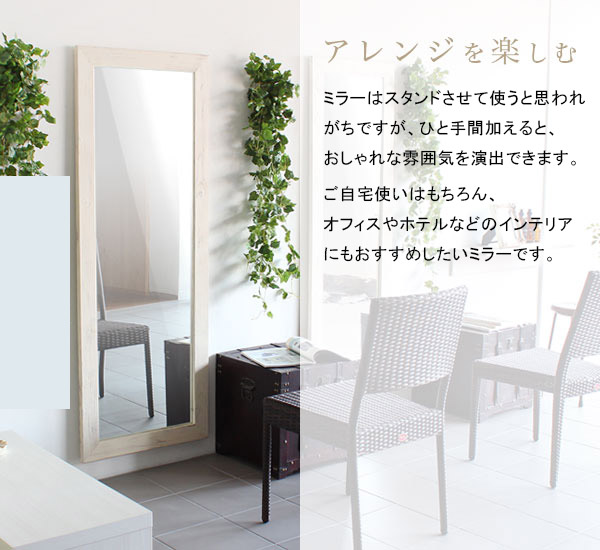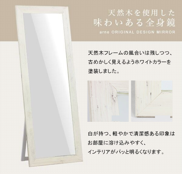 スタンドミラー おしゃれ 姿見 アンティーク調 ホワイト 白 木枠 鏡 ミラー 木製 西海岸風 style SM4815 ▽