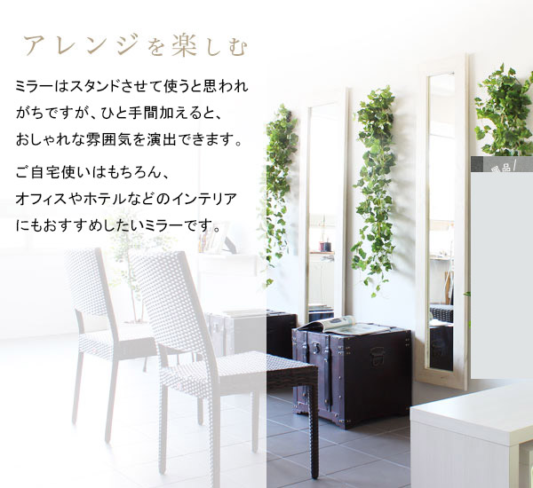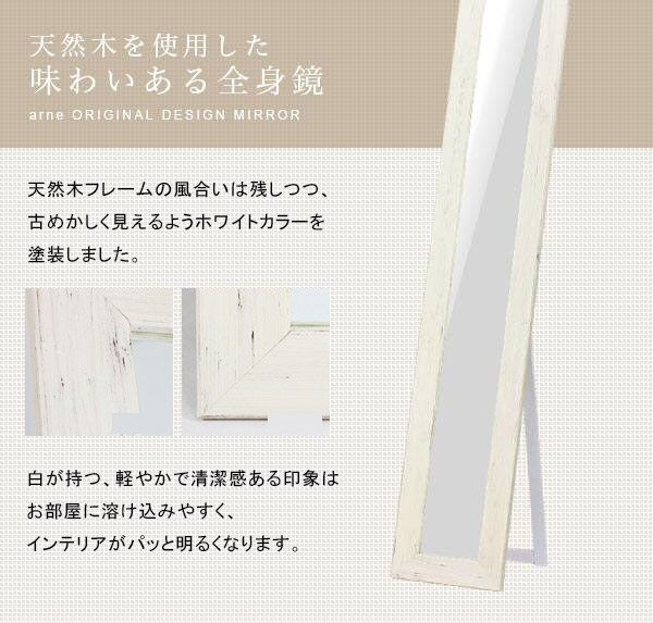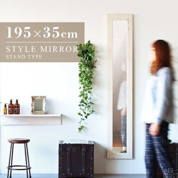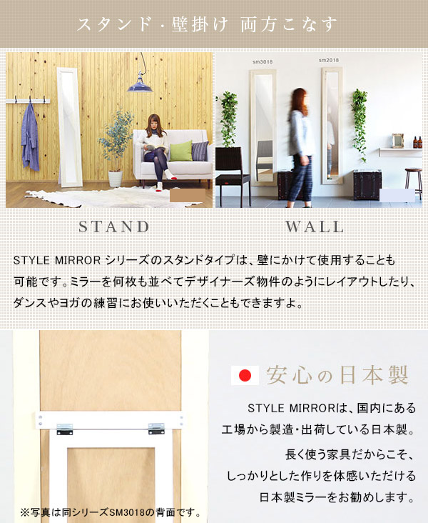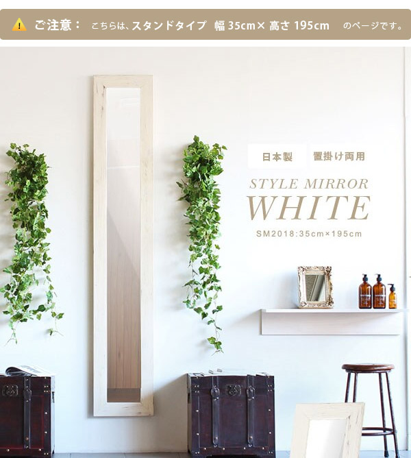 鏡 ミラー 姿見 おしゃれ スタンドミラー 木製 ホワイト 白 西海岸風 インテリア 木枠 style SM2018 ▽