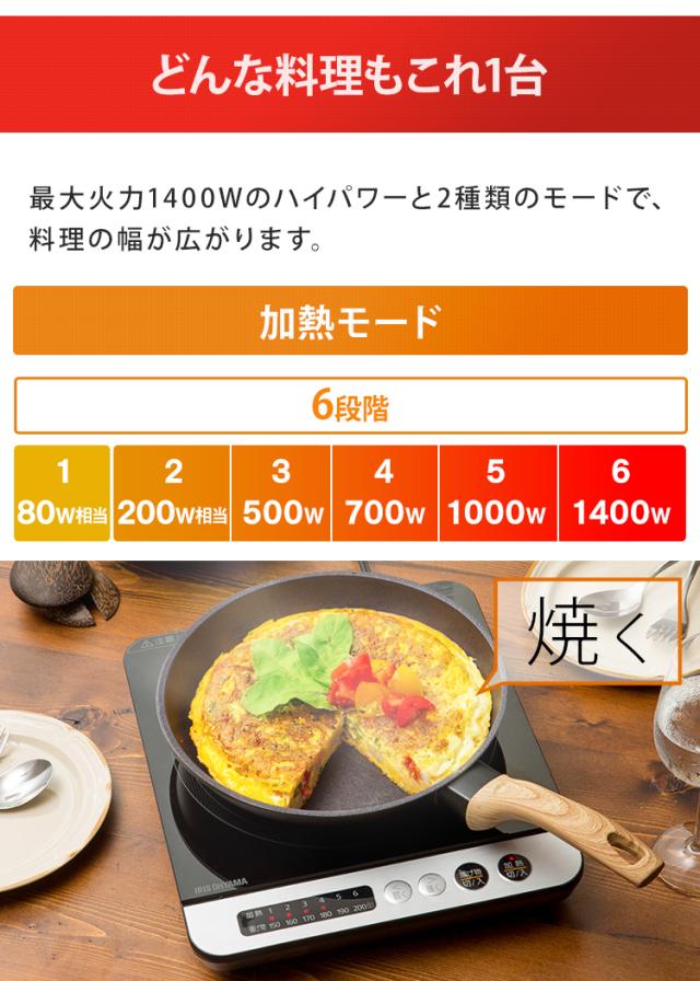 最大火力1400Wのハイパワーと、2種類のモード(加熱・揚げ物)で、料理の幅が広がります。