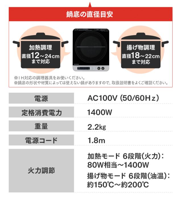 IHクッキングヒーター コンロ ih卓上コンロ IHコンロ 1400W IH調理器 ih 低騒音 卓上IH 卓上コンロ ホワイト ブラック 調理 キッチン 新生活 おしゃれ IHK-T35-B アイリスオーヤマ 送料無料 安心延長保証対象