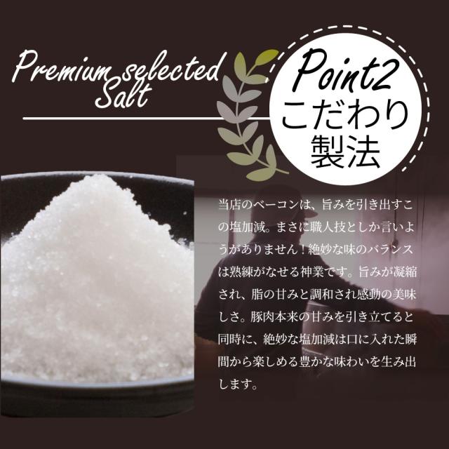 - 脂身少なめで赤みの美味しいベーコンでした。