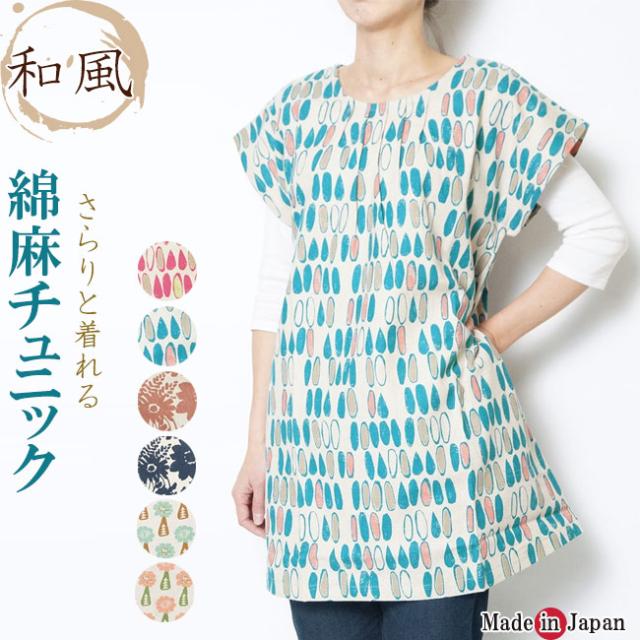 チュニック レディース 日本製 半袖 麻55%綿45% 3柄 678 母の日_kz
