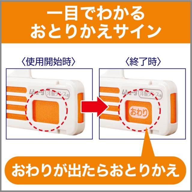 ●おとりかえサインつきなので、取り替え時期がわかります。正面と側面の両方のおとりかえサインの窓に「おわり」の文字が出たら新しいムシューダにお取り替えください。