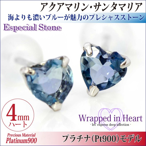 アクアマリン サンタマリア 送料無料 Pt900プラチナ 4mmハートシェイプ スタッドピアス 両耳ピアス[宅配便]