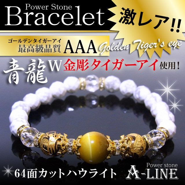 パワーストーン ブレスレット 金運UP AAAゴールデンタイガーアイ12mm&64面カットハウライト&水晶8mm PW-2816