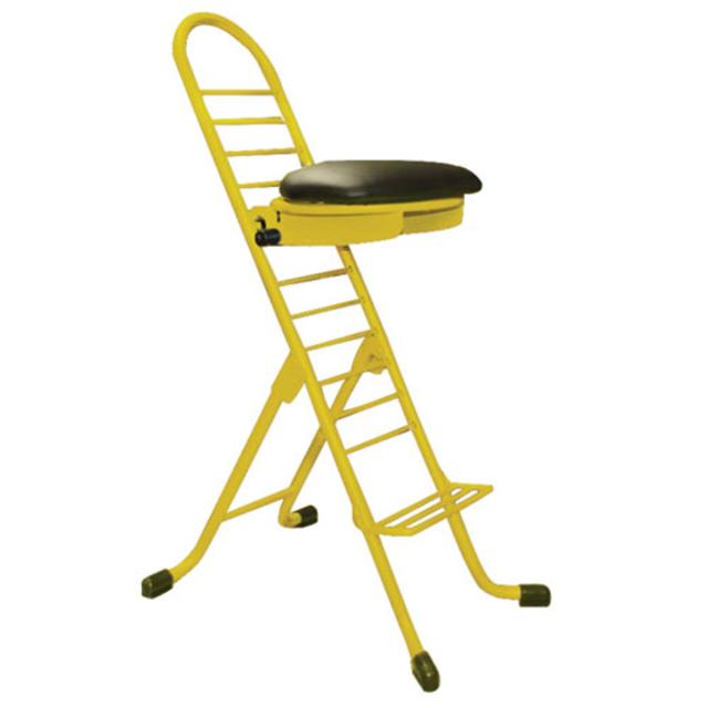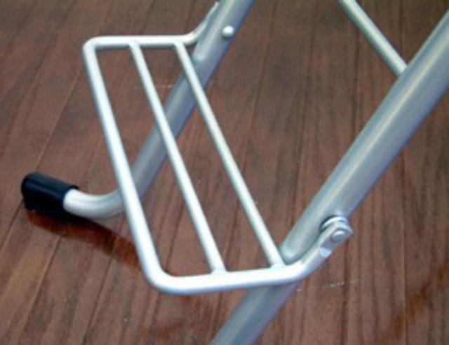折りたたみ式のステップが付いています。座面を高く上げても、足をステップに置くことで楽に作業ができます。