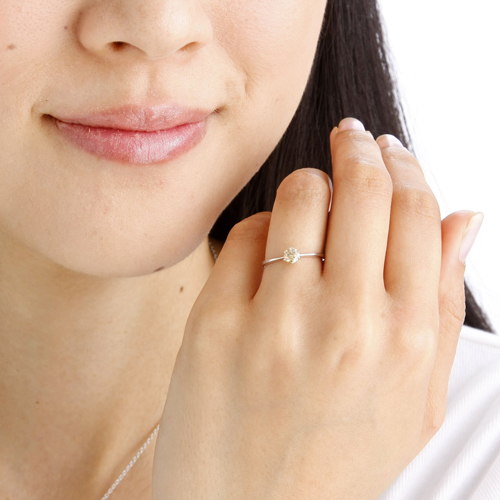 華奢なリングに留めているので、ダイヤが実物以上に大きく見えますよ。