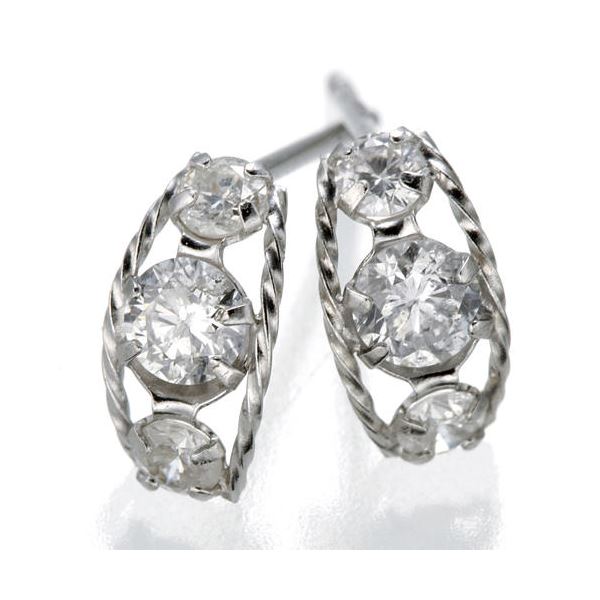 正面から見るとエタニティピアスみたい♪耳の先端で3石のダイヤモンドがキラッと輝き、それを包むK18の地金は縄こちらのようなねじれ加工がほどこされていてデザインが繊細。実際につけてみると「上品、コンサバ、大人の女性」といった言葉が似合う、上品なピアスなんです。