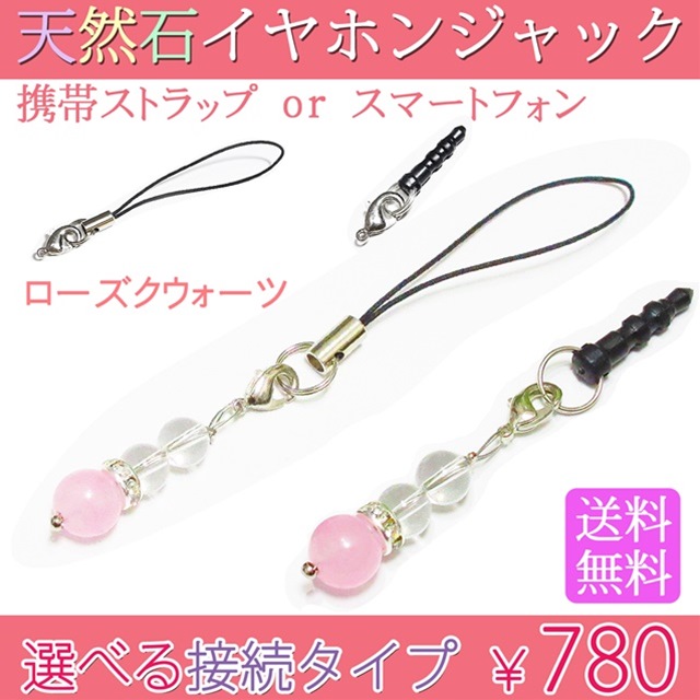 イヤホンジャック 携帯ストラップ 選べる接続タイプ 最高品質 天然石 パワーストーン ローズクウォーツ ピンク水晶 数珠 スマホピアス 送料無料 送料込み アクセサリー アイフォン iPhone 開運 誕生日プレゼント 母の日 父の日 厄年 厄除け 人気 SALE