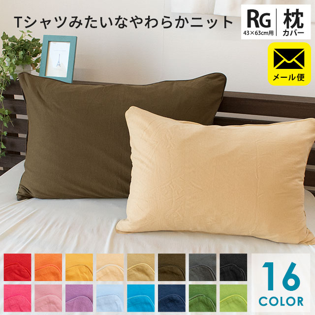 枕カバー やわらかニット 43×63cm Tシャツ素材 綿100% 無地 シンプル ピロケース 布団カバー ※メール便 同梱不可