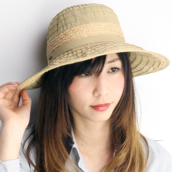 ハット レディース 帽子 つば広 ラフィア リボン CRUSHER スカラ ドーフマン 紫外線対策 アウトドア タン ベージュ