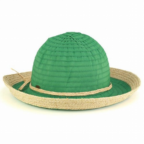 ハット つば広 レディース 帽子 UVカット 紫外線カット リゾート ラフィアハット SCALA ドーフマン スカラ グリーン