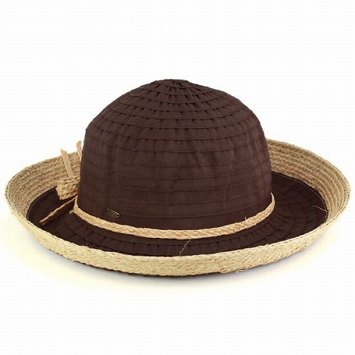 ハット つば広 レディース 帽子 UVカット 紫外線カット リゾート ラフィアハット SCALA ドーフマン スカラ チョコレート