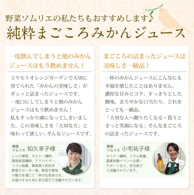 | 果汁100%ストレートジュースは、みかんをそのまま飲む感覚!! ごくごく飲めてとっても美味しい!濃厚なのにすっきりした上品な味わいです。 |