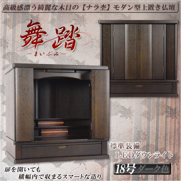 モダン型唐木仏壇【舞踏 −まいぶみ− ナラ杢18号 ダーク色】小型仏壇・送料無料