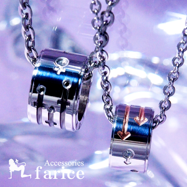 【永遠の愛】文字彫りバレルリング クリアストーン装飾 ステンレス ペアペンダント ペアネックレス【ブラック or ピンクゴールド】
