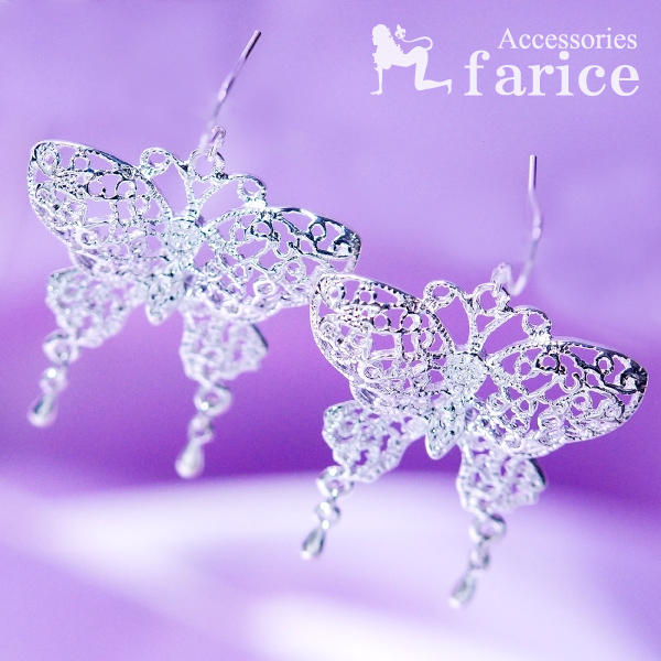 バタフライ(蝶)モチーフ ヨーロピアン調レース刺繍柄フェザー(羽) シースルーデザイン レディース アメリカンフック ピアス
