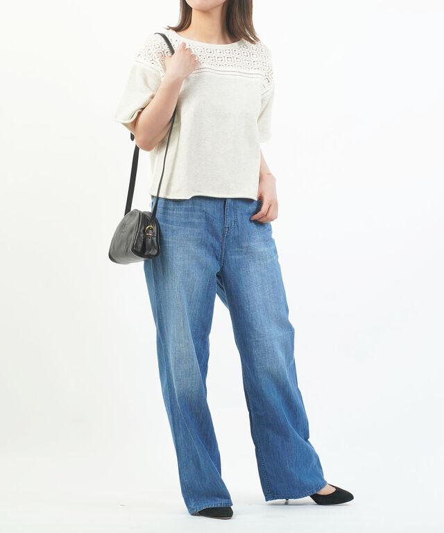 カジュアルなスウェットと繊細なレースのコンビデザインが個性的な一枚。