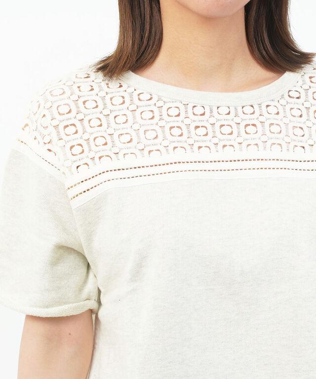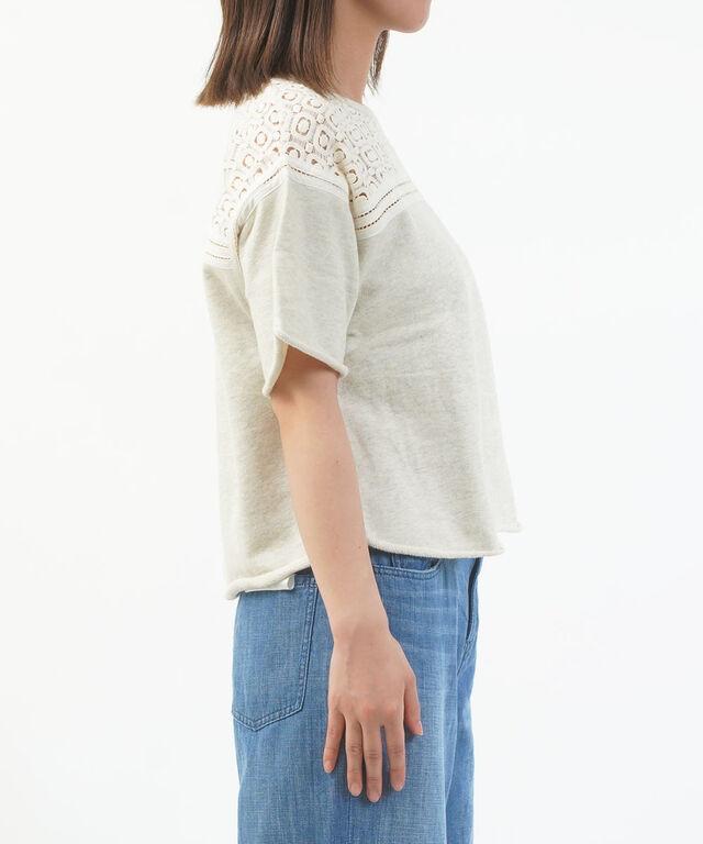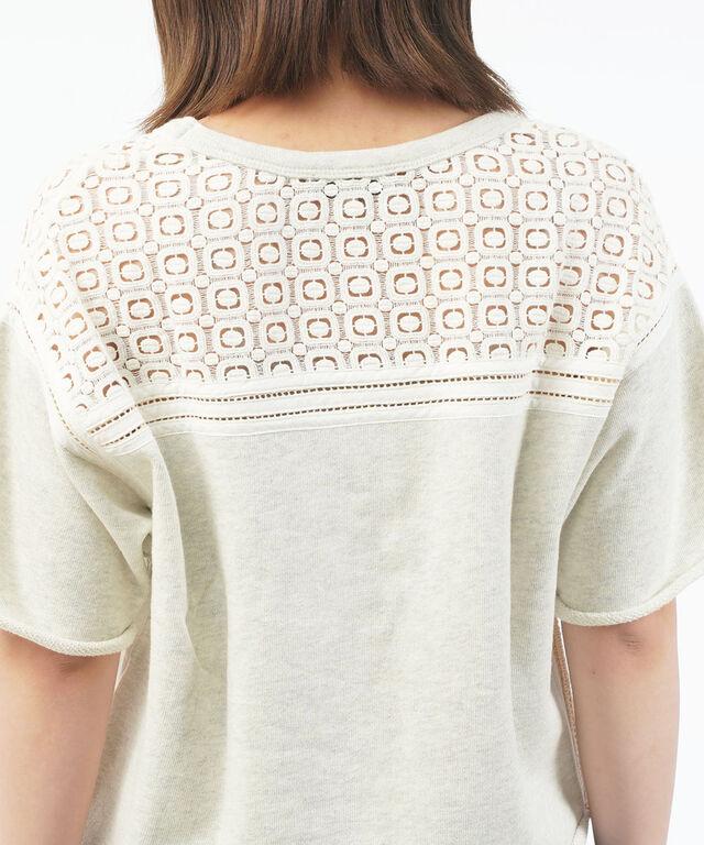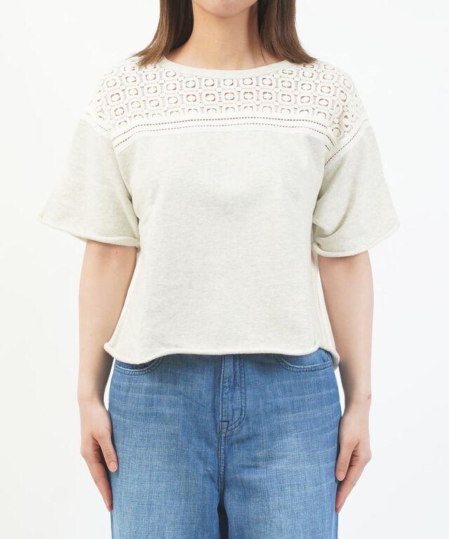 胸元にレースをあしらった半袖スウェットプルオーバーです。