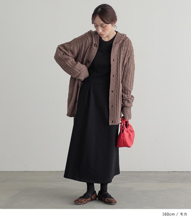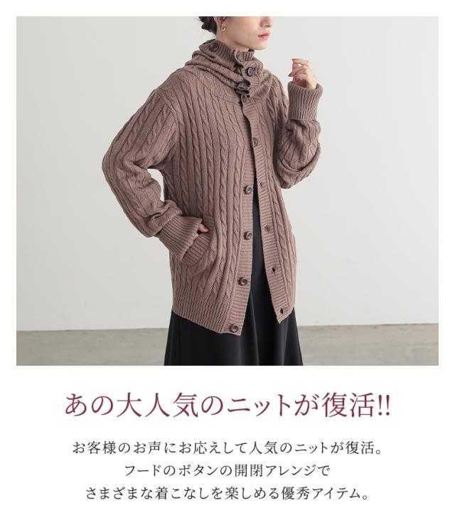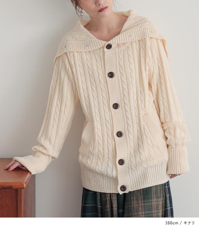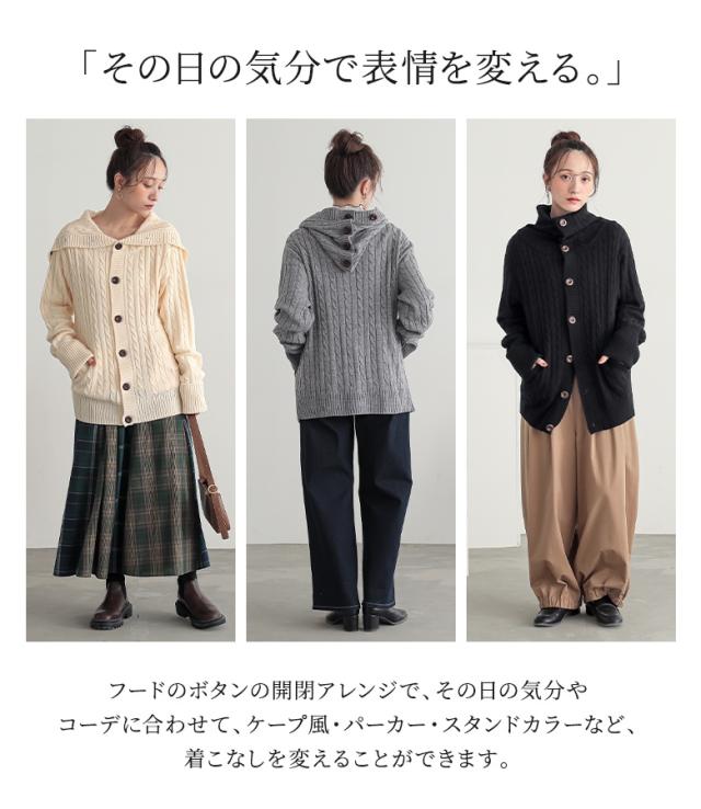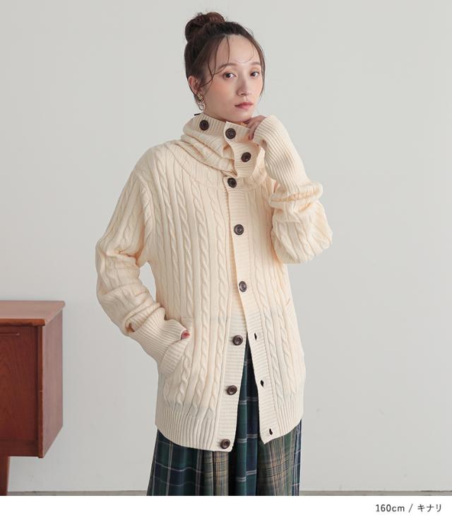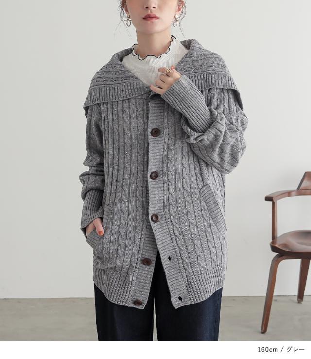 『ケーブルニットカーディガン』 【メール便不可】【20】[カーディガン レディース トップス 長袖 パーカー ニット ケーブル コーディガン ケープ風 ハイネック セーター ニットカーディガン ゆったり レイヤード 重ね着 秋 冬 hay2750]