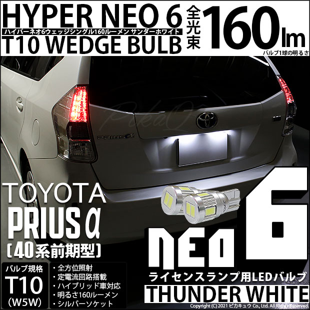 トヨタ プリウスα (40系 前期) 対応 LEDライセンス T10 HYPER NEO 6 WEDGE サンダーホワイト 2球 2-C-10