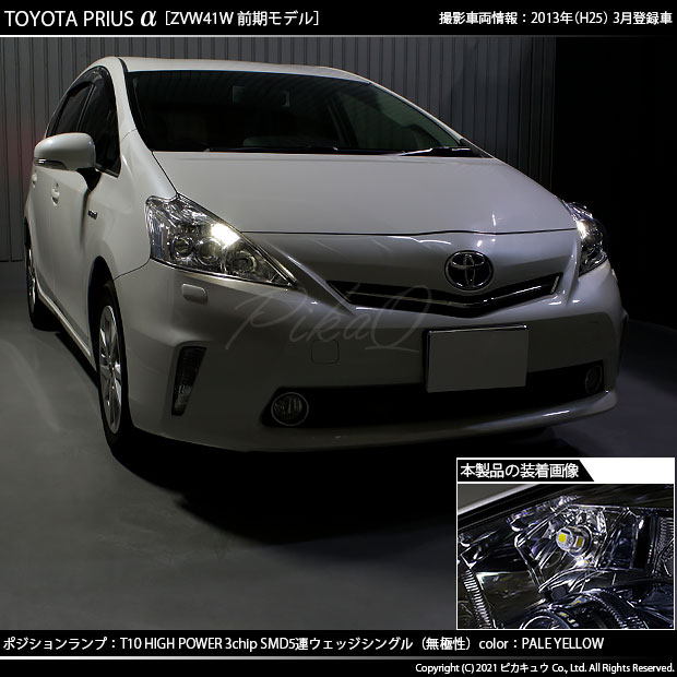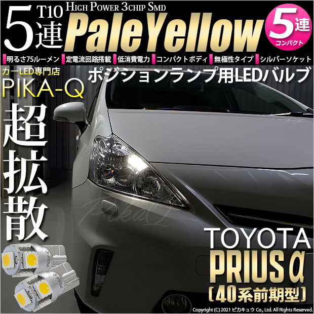 ピカキュウ,LED専門店,LEDバルブ,LED,SMD,T10,W5W,T10 HIGH POWER 3CHIP SMD 5連ウェッジシングル球,ペールイエロー,ポジション灯,ポジションランプ,車幅灯,スモール,トヨタ,40系プリウスアルファ,プリウスα,TOYOTA,PRIUSα,ZVW40W,ZVW41W,前期