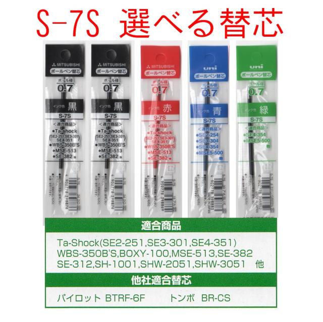 三菱鉛筆 uni S-7S 0.7mm 選べる替芯 5本組です。 お持ちの本体(画像2)から1色ペンなら黒5本とか4色ペンなら黒2本・赤1本・青1本・緑1本と言う様に注文下さい。単色でも色込でもOKです。