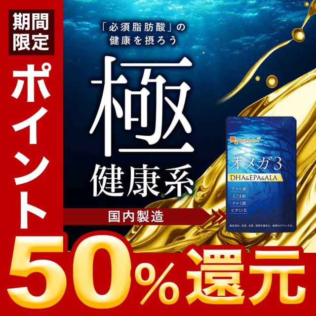 【Pontaパス限定50%還元】オメガ3 - DHA & EPA & α- リノレン酸 サプリ (約1ヶ月分) オメガ3 サプリ ドコサヘキサエン酸 送料無料 dha epa オメガ3 サプリメント サプリ 口コミ DHA EPA 魚 亜麻仁油 アマニ油 脂肪酸 健康 健康食品 ダイエット 健康 _JH _1K 19012