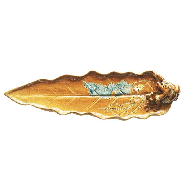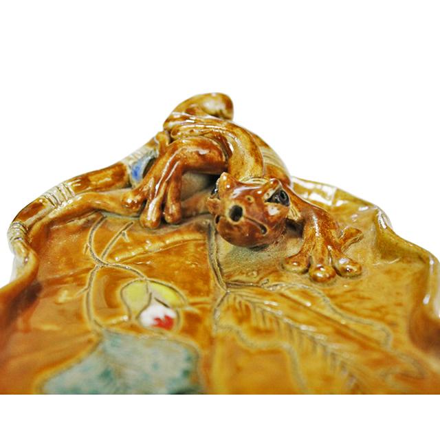 リーフ型トレイとヤモリの香立てを組み合わせて焼き上げたインパクト抜群の陶器製香立て