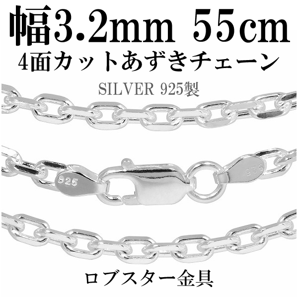 シルバー4面カットあずきチェーン 幅約3.2mm 55cm/シルバー925 ネックレス チェーンのみ メンズ