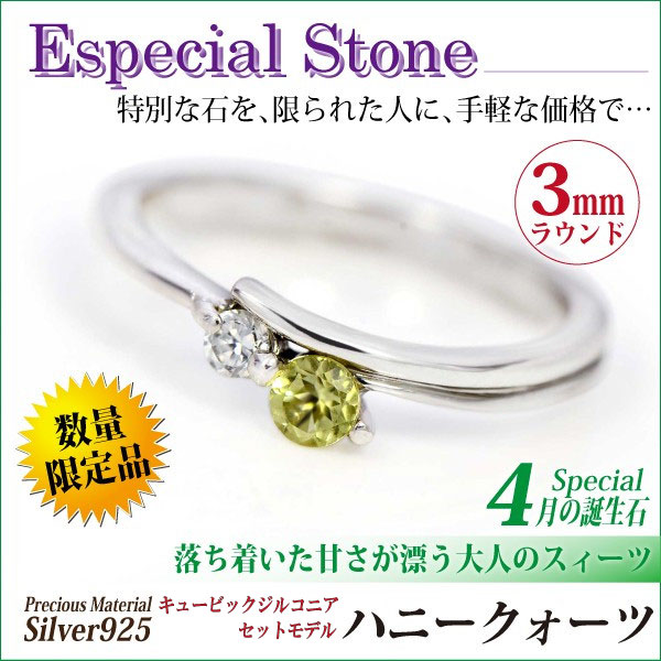 送料無料 刻印無料 シルバー925 誕生石 リング ハニークォーツ 脇石キュービックジルコニア ツインストーン 指輪 単品