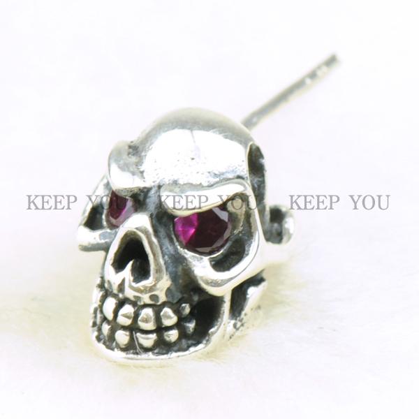 メール便 送料無料 シルバー925ピアス スカル ピンクジュエル【シルバーアクセサリー SILVER925 スターリングシルバー】si-00070 ┃