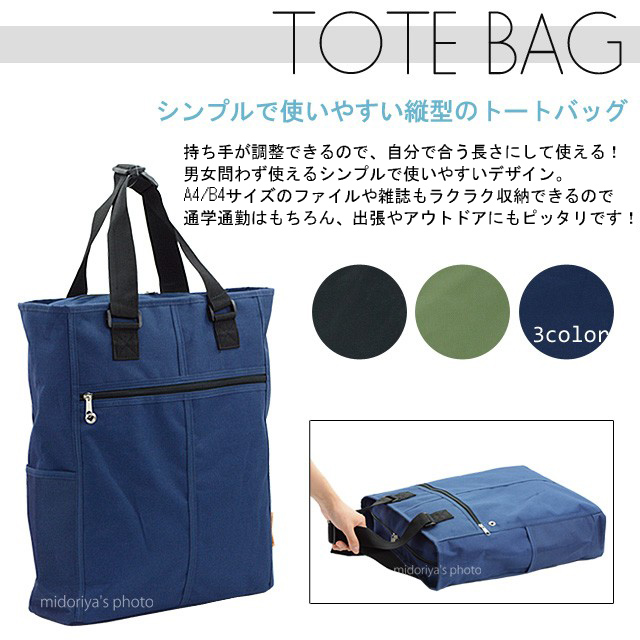 トート バッグ メンズ レディース 男女兼用 鞄 A4 B4 対応 大容量 縦型 トートバッグ (mk-8579-8281) 通勤 通学 出張 手提げ シンプル 無地 カジュアル アウトドア ポケット 収納 大型 大きめ 黒 紺 ブラック ネイビー カーキ グレー 女性 男性 大きい ポケット agesugi_sfa