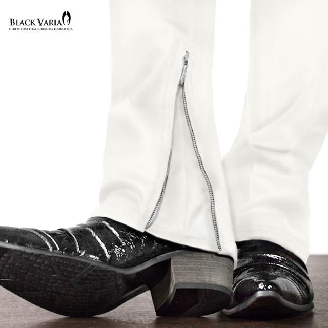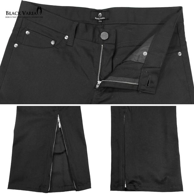 パンツ ブーツカット 裾 zip ジップ ファスナー スリム ストレッチ シューカット 無地 メンズ mens(ブラック黒) 933058