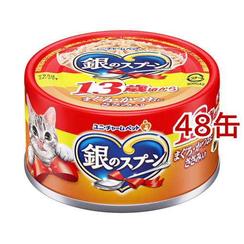 銀のスプーン 缶 13歳頃から まぐろ・かつおにささみ入り(70g*48缶セット)[キャットフード(ウェット)]