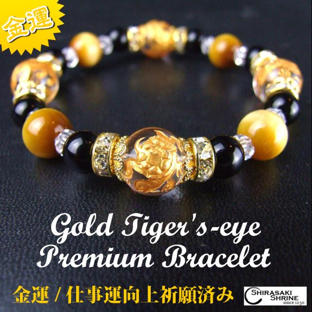 風水四神獣 ゴールデンタイガーアイ×オニキス パワーストーンブレスレット 神社でお清め・お祓い済み 内周18cm/高級桐箱付き/金運/仕事運/運気上昇/守護石/お守り/祈願済み