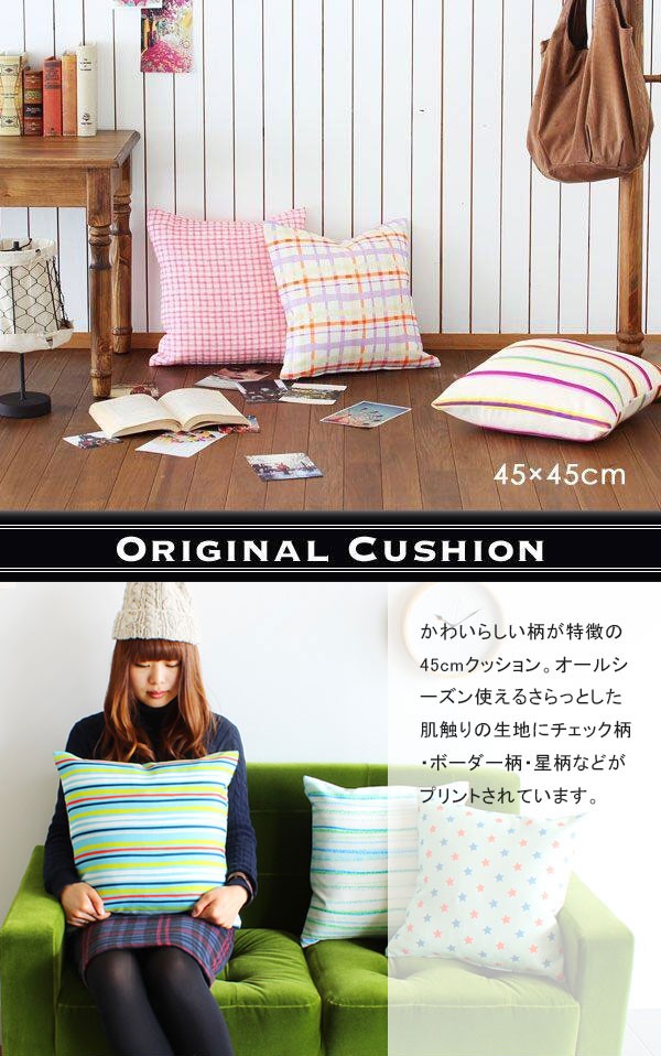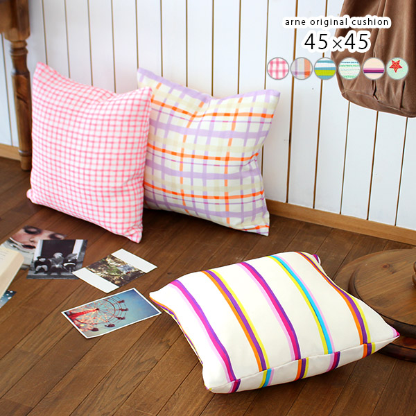 クッション 45×45 45 正方形 かわいい 45×45 北欧 車 チェック ストライプ 腰痛 四角 中材 子供 △