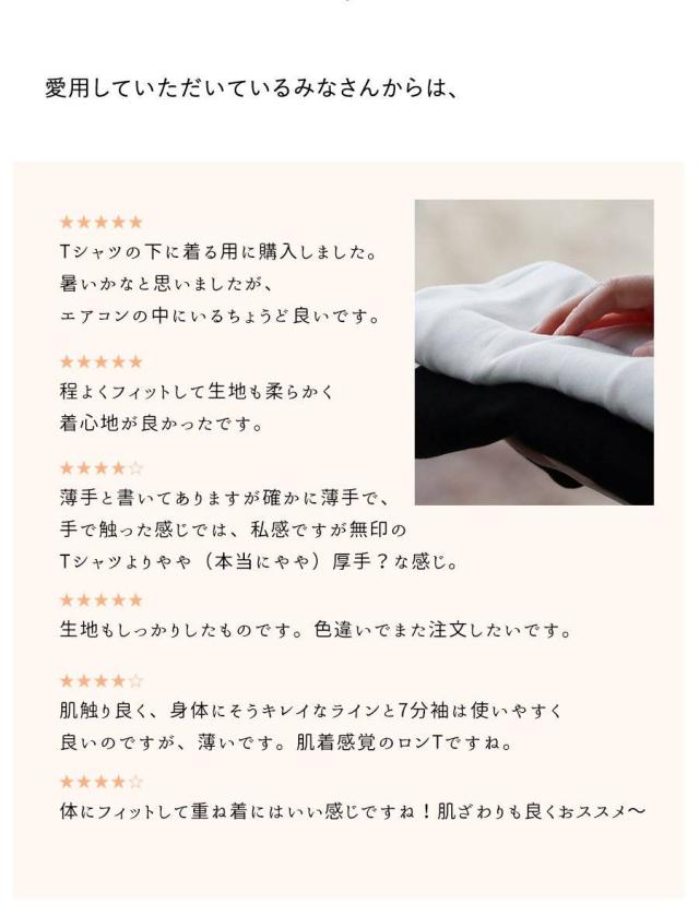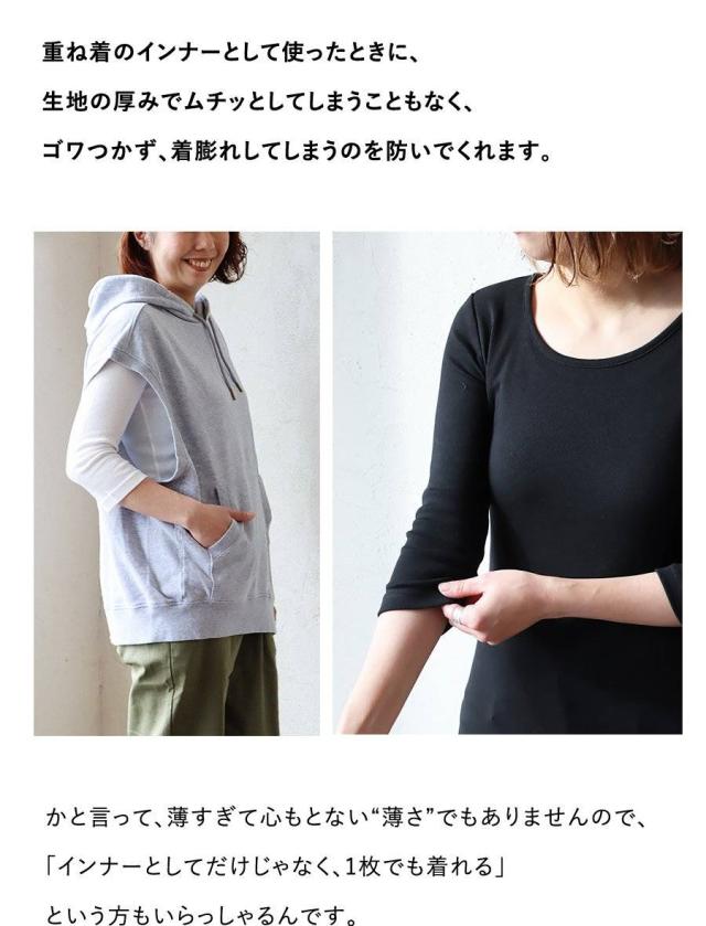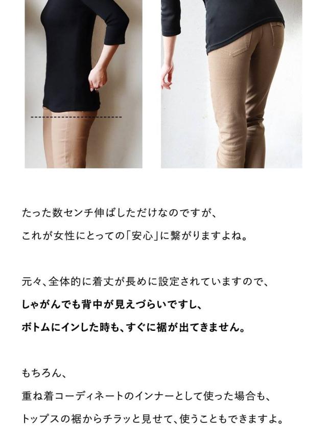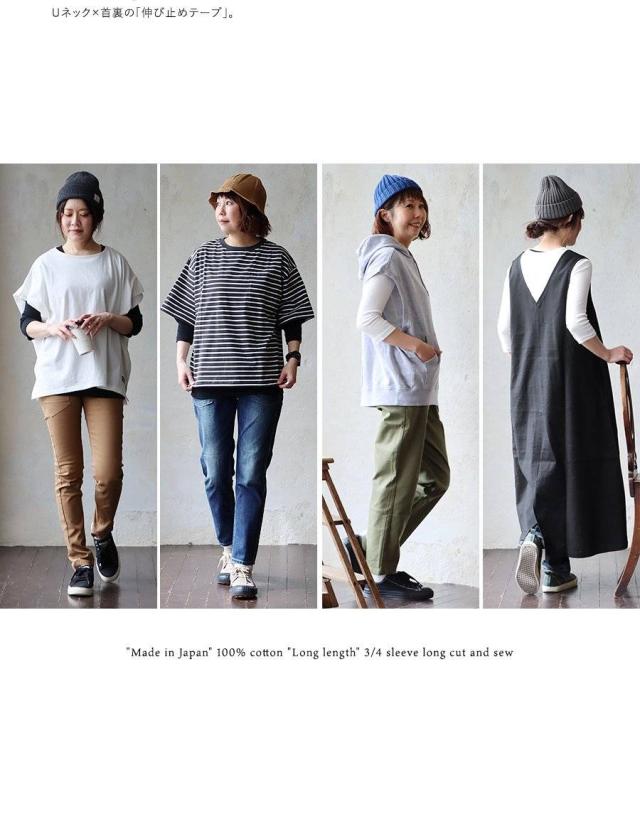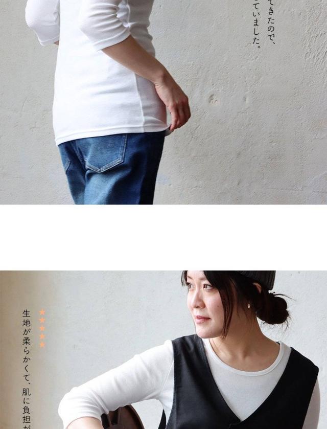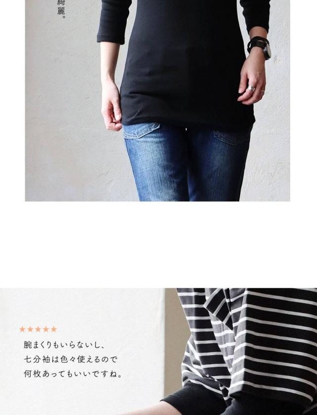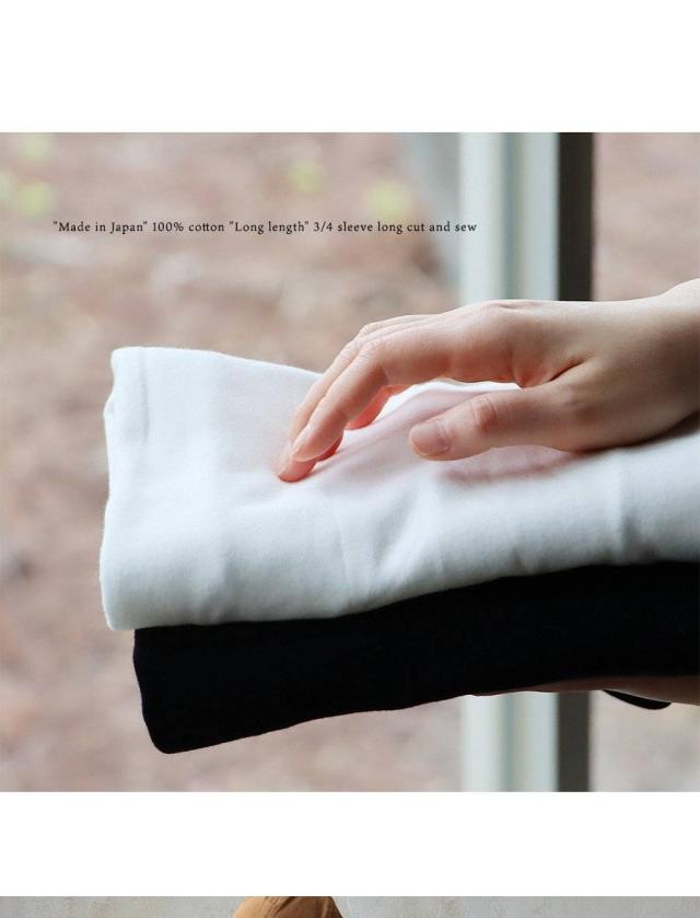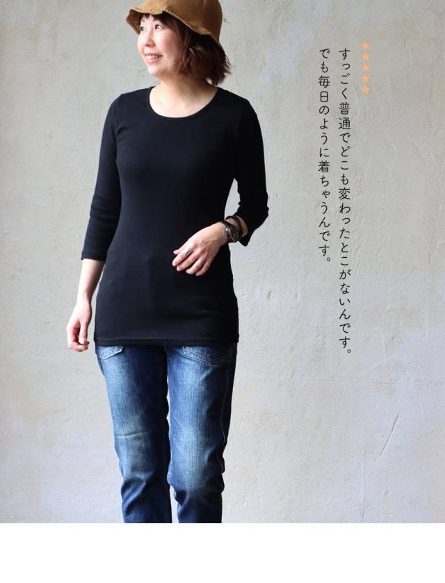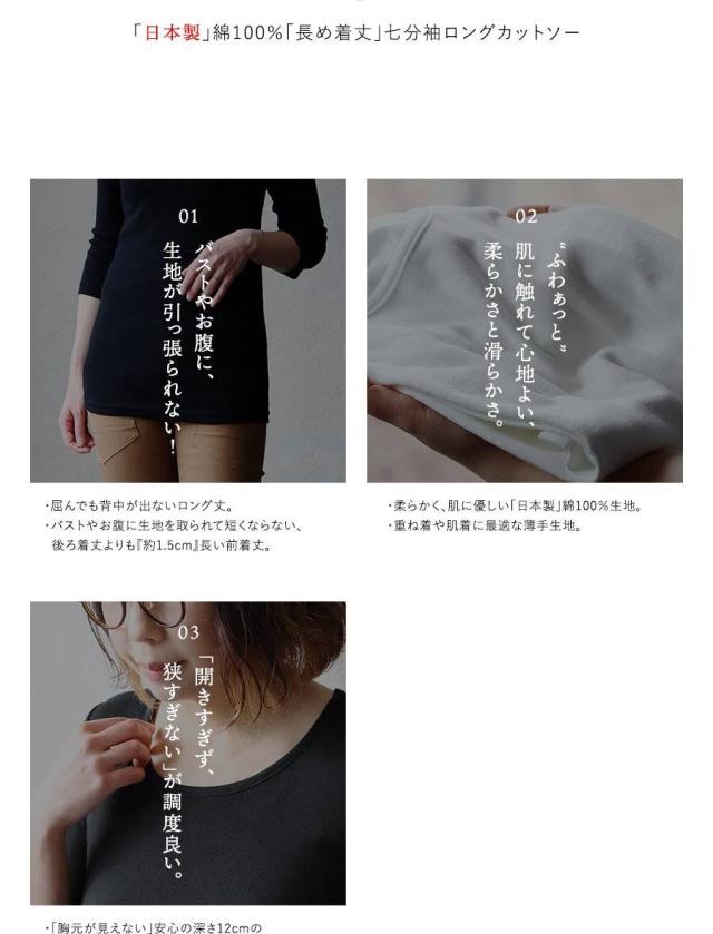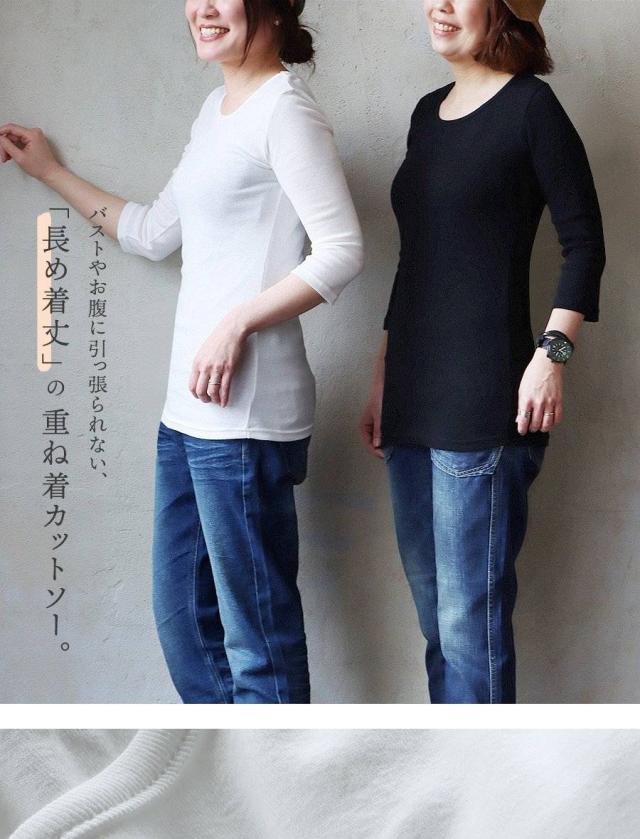 カットソー ロング丈 tシャツ 七分袖 インナー レディース 日本製 綿100% コットン バスト や お腹周り に 生地を取られない 長め着丈 胸元カバー Uネック 柔らかい トップス 7分袖 重ね着用 下着 肌着 肌に優しい パティ