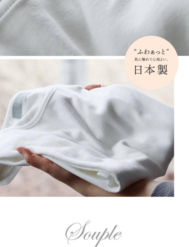 【メール便50】 カットソー ロング丈 tシャツ 七分袖 インナー レディース 日本製 綿100% コットン バスト や お腹周り に 生地を取られない 長め着丈 胸元カバー Uネック 柔らかい トップス 7分袖 重ね着用 下着 肌着 肌に優しい パティ Souple スプル