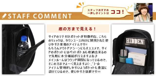 | 四角いフォルムとマチたっぷりのポケットが特徴的! タウンユースに焦点を置いて作られた機能派リュックサック。 使用者がリュックサックを選ぶ際に一番気にする“収納の数”も多く、アイテムの管理がしやすくなっています。 サイドのマチ付きポケットにはペットボトルやタンブラーも入るので、街中でサッと出し入れしたいアイテムの収納に◎ 更に、背面側のファスナーポケット内にはノートPCやタブレットも収納可能です! |