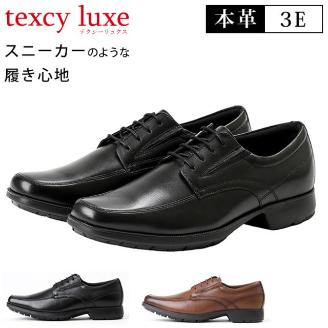 テクシーリュクス ビジネスシューズ 走れる 本革 3E 幅広 歩きやすい 疲れにくい 黒 アシックス商事 TU-7769 冠婚葬祭 紳士 通勤 靴