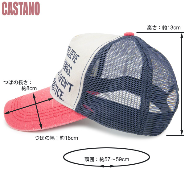| サイズ | サイズ表記57〜59cm(頭囲:約57〜59cm[スナップで調節可能・ホール数7]、高さ:約13cm、つば:長さ約8cm・幅約18cm) |