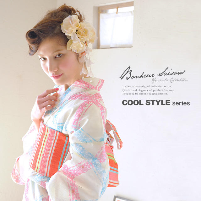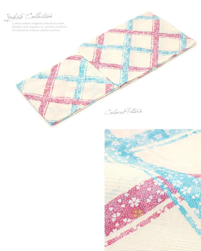 浴衣セット レディース レトロ 浴衣セット 大人 3点セット クリーム 黄色系 水色 ピンク 赤 斜め格子 桜 ラメ 綿 半幅帯 女性 ボヌールセゾン