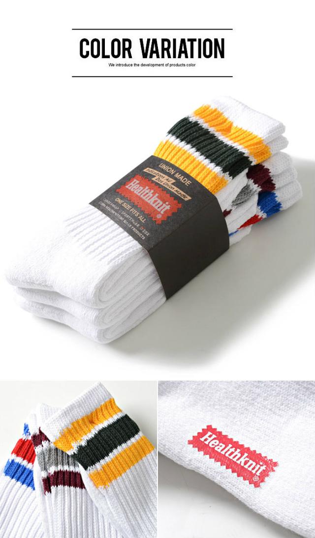 ソックス メンズ Healthknit【ヘルスニット】配色3本ラインクルーソックス 靴下3枚セット 3PSET即日発送 BITTER ビター プレゼント ギフト バレンタイン