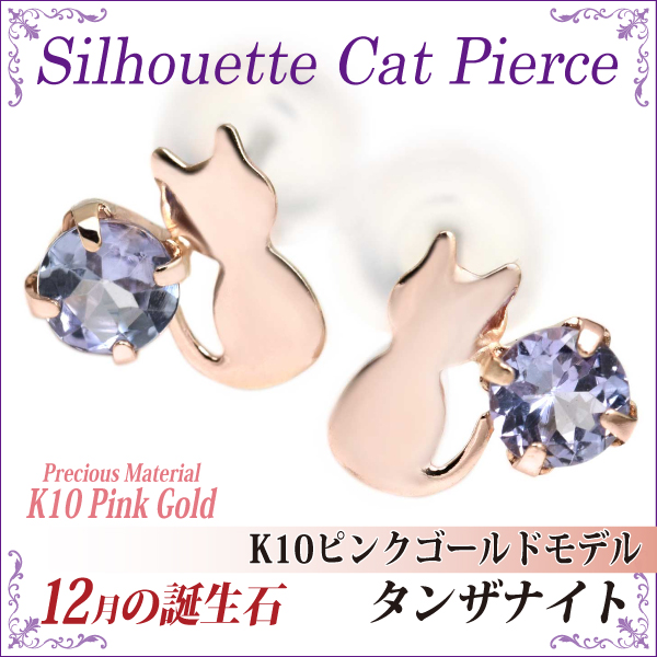 タンザナイト ピアス 送料無料 K10 ピンクゴールド シルエットキャット ネコ 両耳ペア