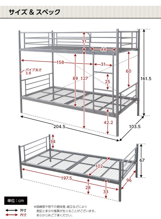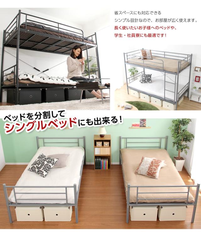2段ベッド シングル パイプベット 二段 頑丈 スチール 分離 分割式