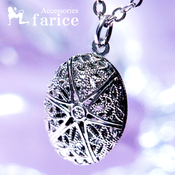 銀古美調/シルバーカラー スター&フラワープチオーバル小型楕円型 レディース ミニロケット アロマペンダント アロマネックレス