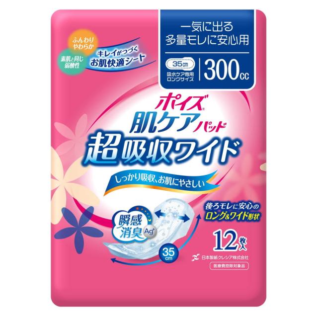 【軽失禁パッド】ポイズ肌ケアパッド 超吸収ワイド 女性用 300cc 12枚