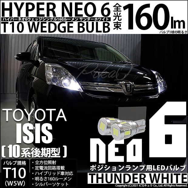 トヨタ アイシス (10系 後期) 対応 LED ポジションランプ 競技車専用 T10 HYPER NEO 6 サンダーホワイト 2個 2-C-10