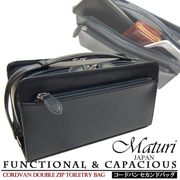 | セカンドバッグ メンズ コードバン 馬革 ダブルファスナー Wファスナー Maturi マトゥーリ MT-14 |